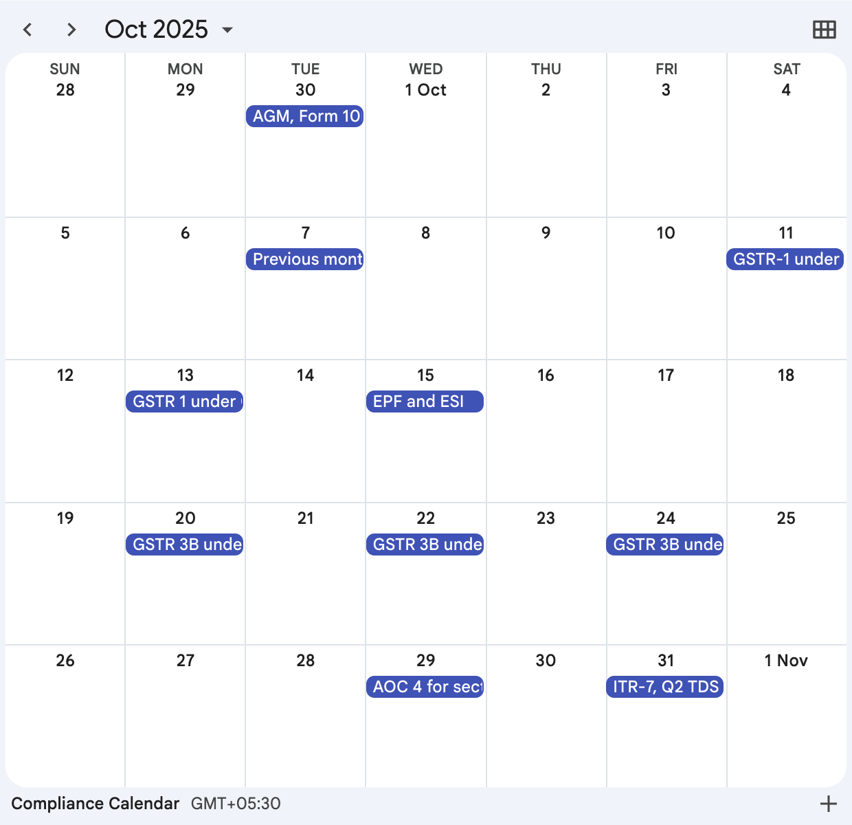 Compliance Calendar (FY 2025-26)